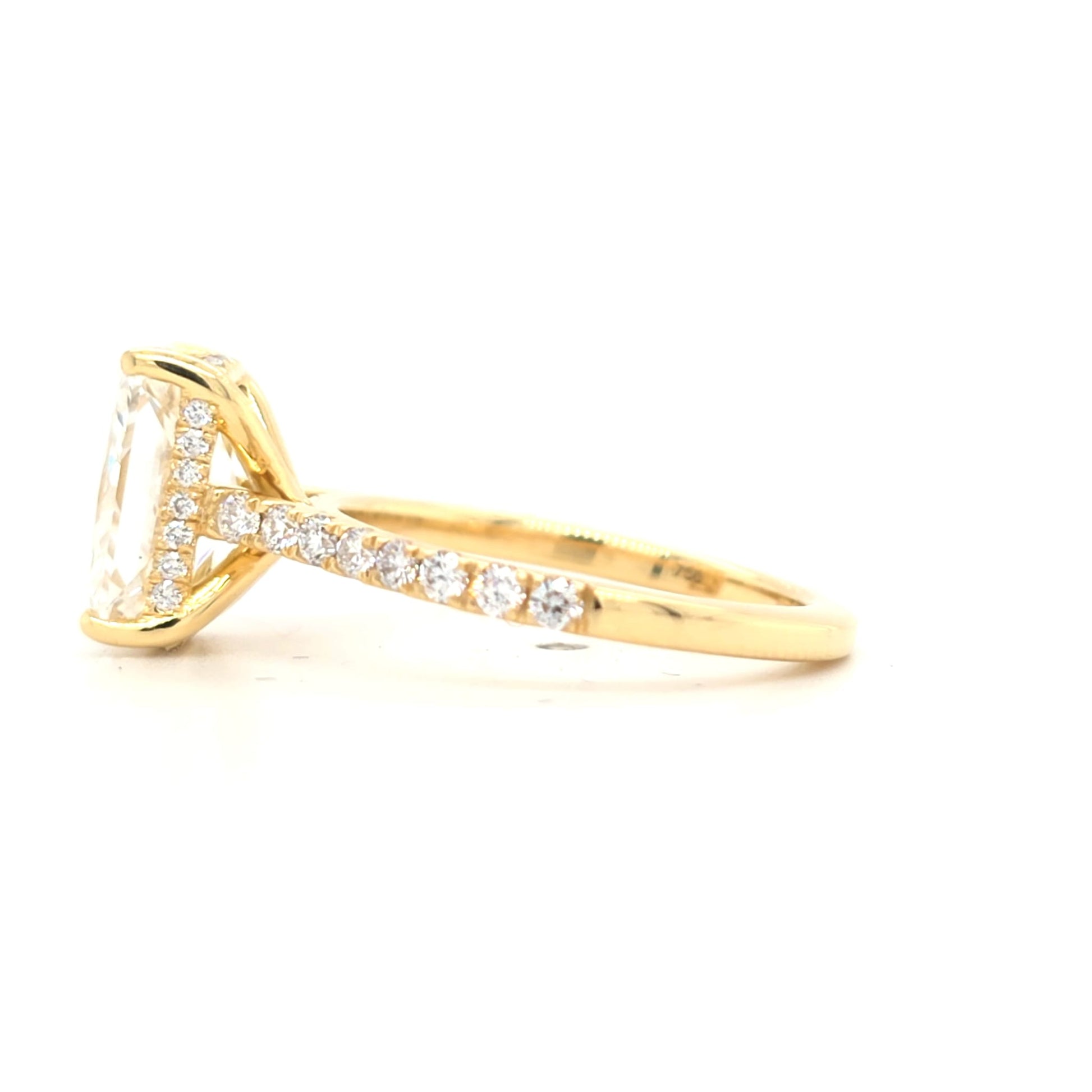 -Hidden halo beneath the centre stone for subtle brilliance