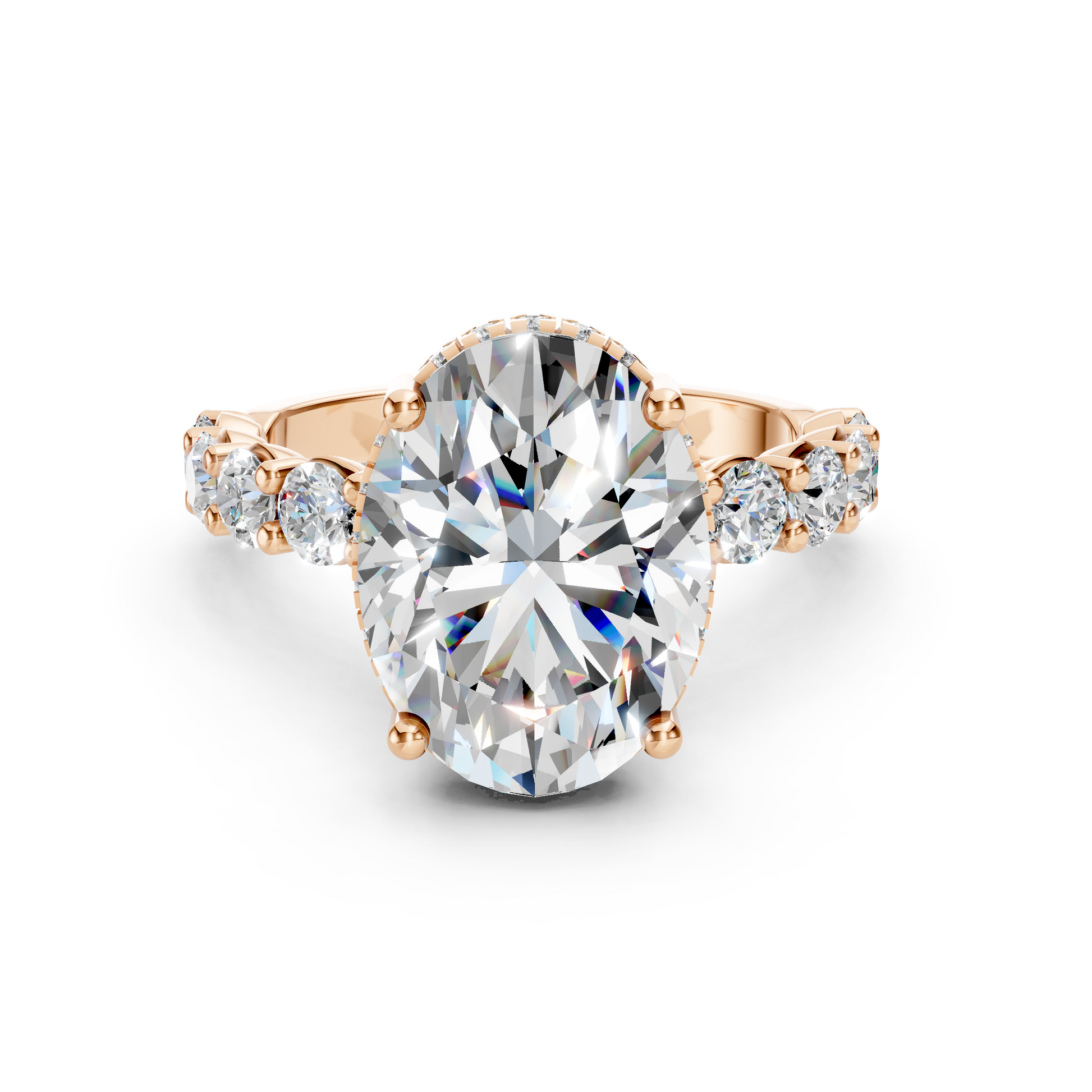 Sophia – Oval Solitaire with 0.1 ct Round Side Stones and hidden halo