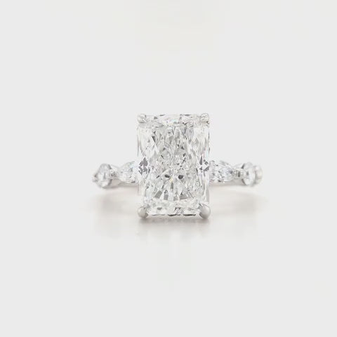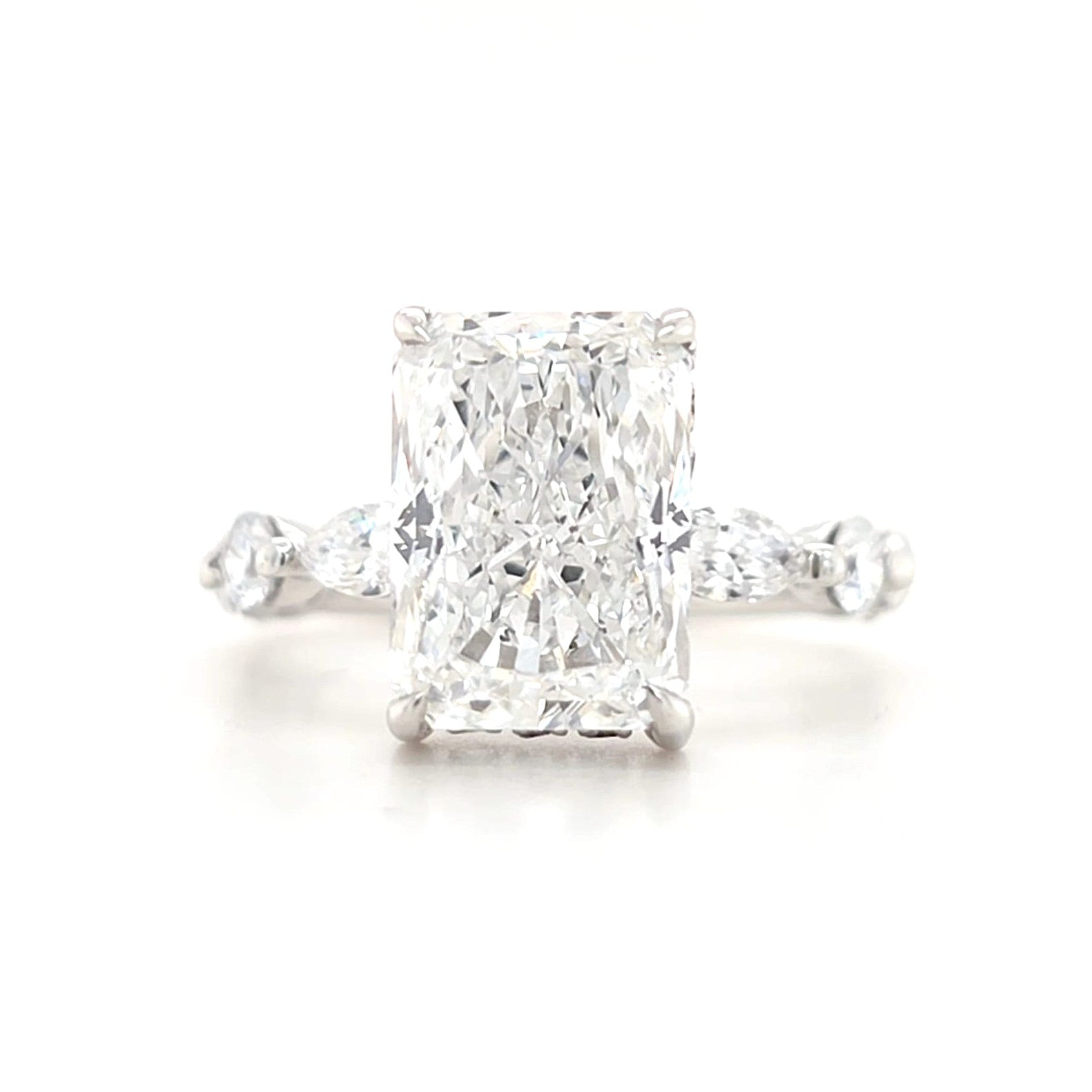 3.5ct D VS1 Radiant Lab-Grown Diamond Hidden Halo | Marquise & Round Accents Band | Size J