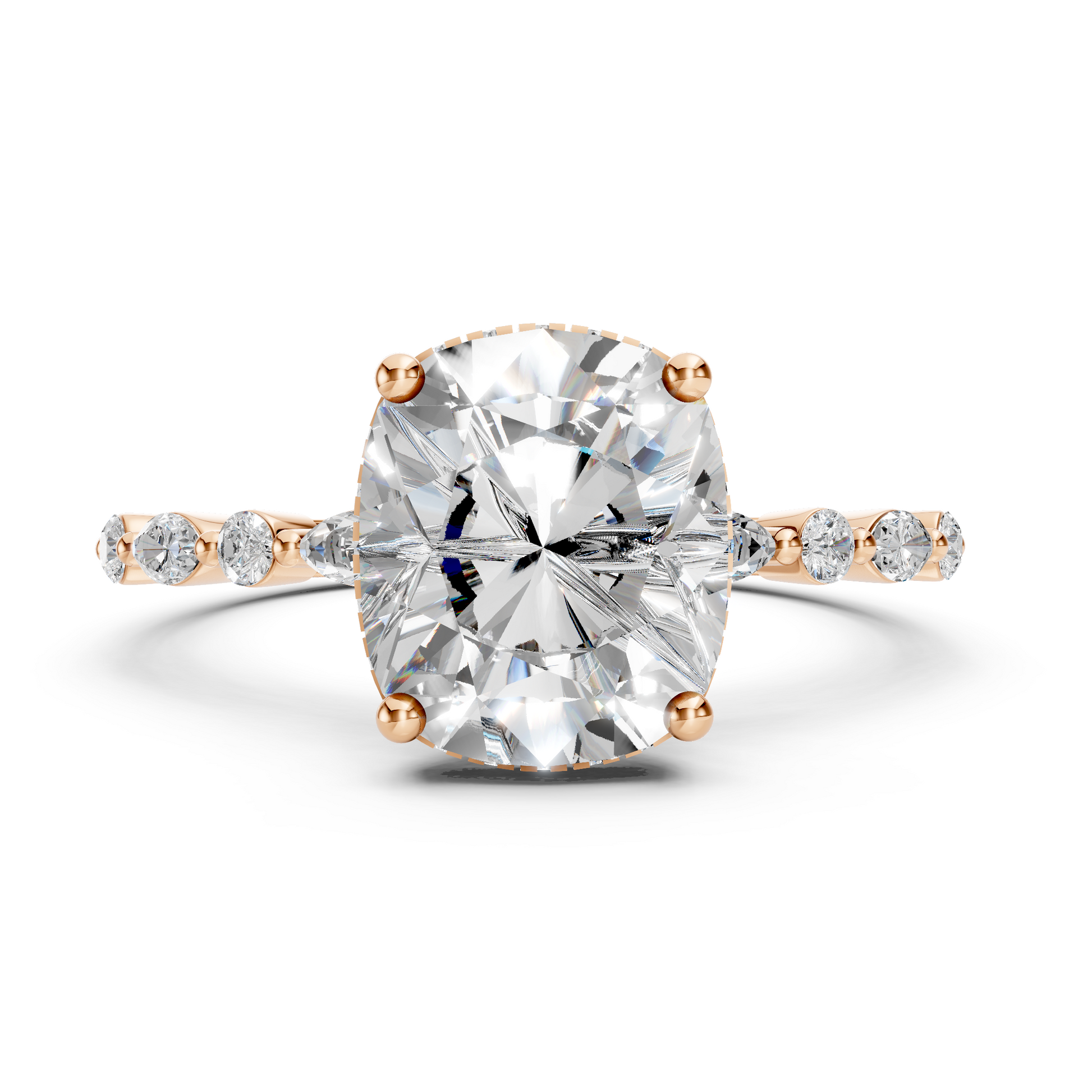 Nora – Elongated Cushion Solitaire with Hidden Halo - Marquise and Round Side Stones